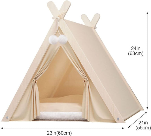 Dog Teepee, Dog Mat, Flat Dog Bed, 24Inch Pet Teepee with Cushion, Large Cat Teepee Dog Tent Bed, Dog Cat House Indoor (CDog Teepee, Dog Mat, Flat Dog Bed, 24Inch Pet Teepee with Cushion, Large Cat Teepee Dog Tent Bed, Dog Cat House Indoor (Color : Beige)