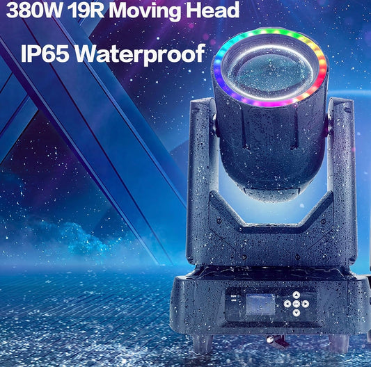 IP65 Waterproof Moving Head Stage Lights 380W 19R Bulb(7500K) 17 Gobos 14 Colors Spotlights 2 Prisms Beam/Frost/Wash/Strobe Effect DJ Lights DMX512 Disco Lights for Outside/Indoor Party Show