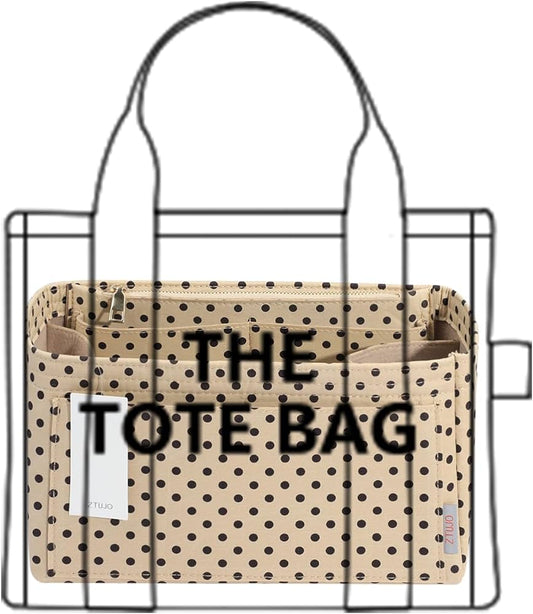 Purse Organizer Insert, Felt Bag Organizer with Metal Zipper, Handbag & Tote Shaper, For Speedy Neverfull Tote.Brown polk dots Beige