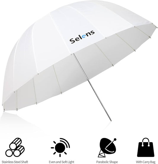 65 Inch Photography Studio Translucent Parabolic Lighting Reflective Umbrella Diffuser with Fiberglass Rib, 23 Inch Depth Soft White