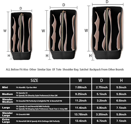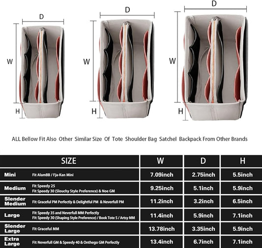 Purse Organizer Insert, Felt Bag Organizer with Metal Zipper, Handbag & Tote Shaper, For Speedy Neverfull Tote