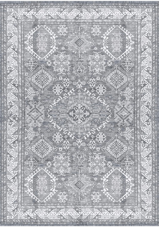 9x12 Area Rug - Stain Resistant Washable Rug, Anti Slip Backing Rugs for Living Room, Vintage Tribal Area Rugs (TPR12-Grey, 9'x12')