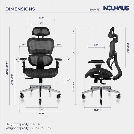 Ergo3D Ergonomic Office Chair - Rolling Desk Chair with 3D Adjustable Armrest, 3D Lumbar Support and Blade Wheels - Mesh Computer Chair, Gaming Chairs, Executive Swivel Chair (Black)