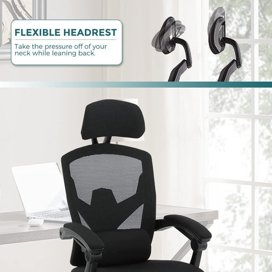 Ergonomic Black 47 '' High Mesh Office Chair with 3D Lumbar Support and armrest For Adult.