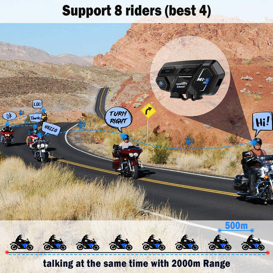 Motorcycle Bluetooth Intercom, Fodsports M1S Pro 2000m 8 Riders Group Motorbike Helmet Communication System Headset Universal Wireless Interphone (Waterproof/Handsfree/Stereo Music/GPS/2 Mic)