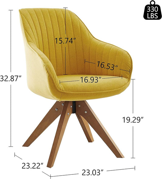 Mid Century Modern Fabric Upholstered Swivel Dining Room Chair with Wood Legs, Leisure Side Chair with Arms for Living Room, Yellow
