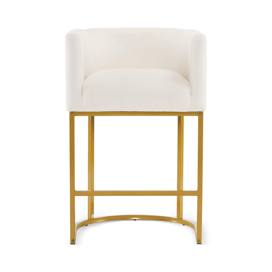 Modern Counter Height Linen Fabric Upholstered Counter Stool, 24 inch Kitchen Island Stool with Gold Metal Frame, Cream