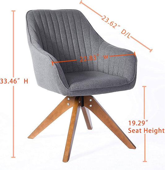 Mid-Century Modern Swivel Accent Chair with Beech Wood Legs, Grey Upholstered Cute Desk Chair Without Wheels for Home Office Living Room Bedroom
