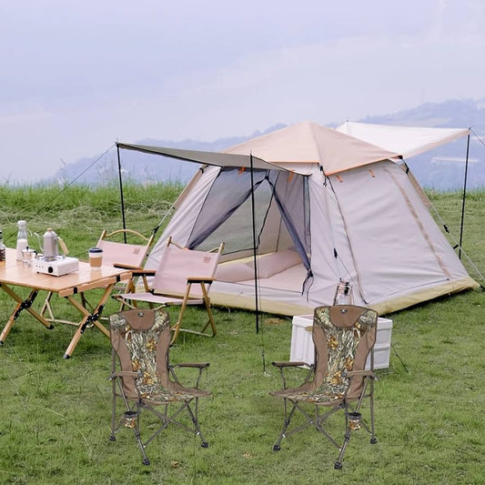Oversized Camping Folding Chair for Adults, Heavy Duty Camouflage Chairs for Outdoor Collapsible Padded Arm Realtree Chair, Portable Camping Chair with Cup Holder for Travel, 330 lbs