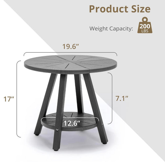 Outdoor Side Table, 19.6" Dark Gray Round Poly Outdoor Coffee Table Weather Resistant, Adirondack End Table for Patio, Pool, Porch, Bistro, Lawn, Balcony, 200lbs, Indoor or Outdoor Use