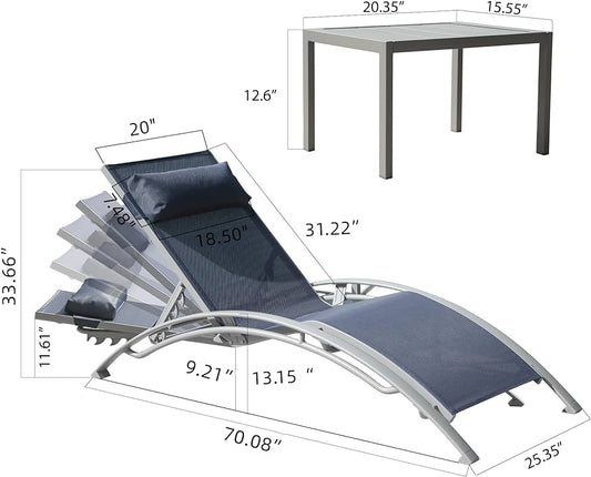 Pool Chairs Set of 3, Adjustable Aluminum Outdoor Loungers with Metal Side Table, All Weather
