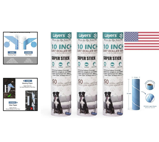 Universal Fit Lint Roller Refill - 10-inch Wide Coverage, Sticky - 3 Packs