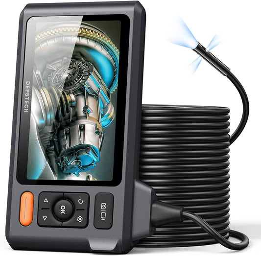 DS520 Triple Lens Sewer Camera, 5" IPS Screen Inspection Camera with 50FT Semi-Rigid Cable, DS520 4.92ft Semi-Rigid Cable, 1080P Dual Lens Endoscope Camera with Lights, Portable Case