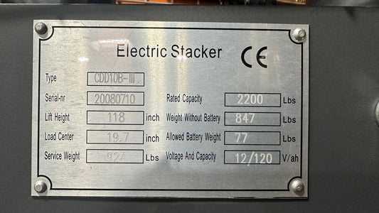 Power Lift Fixed Stacker 3300lbs 118"Lifting
