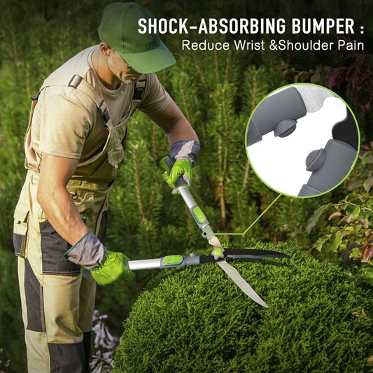 Extendable Hedge Shears with Adjustable Handle, Shock-Absorbing Bumpers, Telescopic Garden Hedge Clippers Hand for Trimming Borders,Boxwood,and Bushes