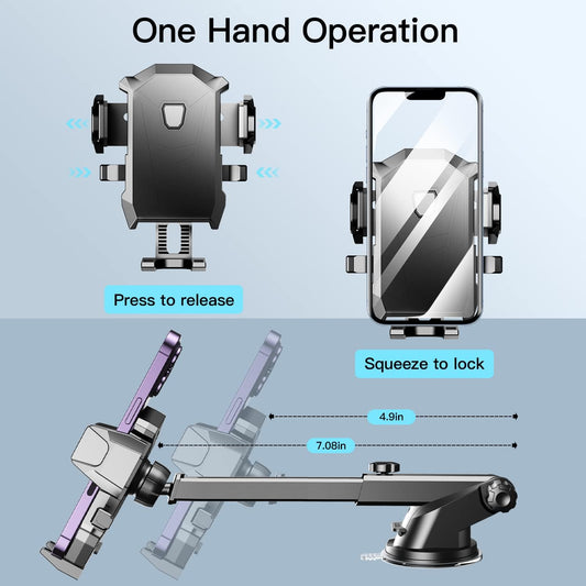 Phone Mount for Car Dashboard & Windshield Hands Free, Cell Phone Holder with Super Suction Cup and Long Arm