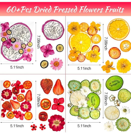 60+ Pieces Dried Pressed Flowers Fruits Set, Real Flowers Fruits for Resin, Natural Fruits Flowers Kit for Crapbooking DIY Art Crafts, Epoxy Resin Jewelry Molds, Candle, Soap Making, Nails DéCor