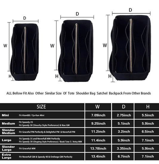 Purse Organizer Insert, with zipper, Handbag & Tote Shaper,Black