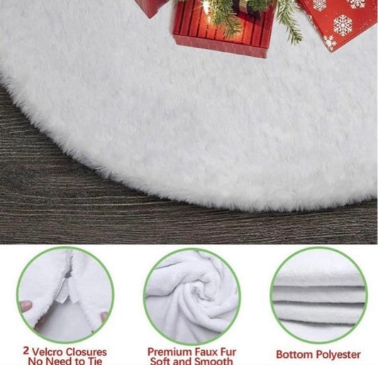 Christmas Tree Skirt 48 inch Large Snowy White Luxury Faux Fur Holiday Party
