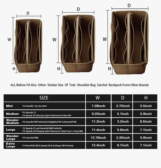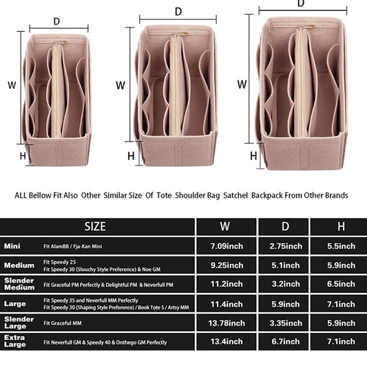 Purse Organizer Insert, with zipper, Handbag & Tote Shaper,Beige