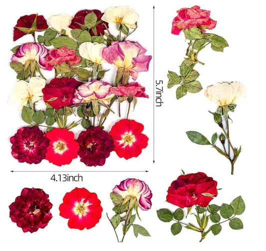 16 Pcs Dried Pressed Flowers, Nauture Pressed Rose, Multi Color Dry Rose, Real Pressed Flora for DIY Jewelry Candle Soap Vase Making Nail Card Scrapbook Art Craft Floral Decors