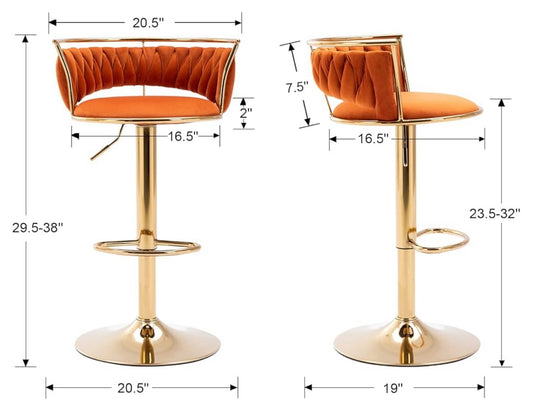 Modern Swivel Bar Stools Velvet Adjustable Height Barstools Low Back Kitchen Island Counter Bar Chair with Golden Base, Orange.Set of 1