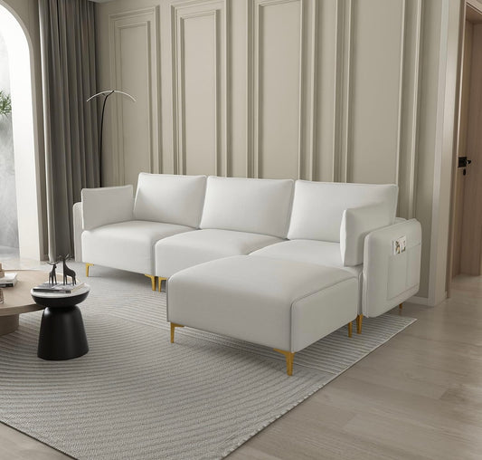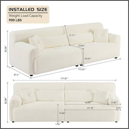 Sectional Sofa, 111.81'' Comfy Upholstered Sofa Ultra Soft Thick Fuzzy Faux Rabbit Fur Couch, Cute Cozy Plush Warm Fleece Fluffy Sectiona Sofa for Living Room, Beige