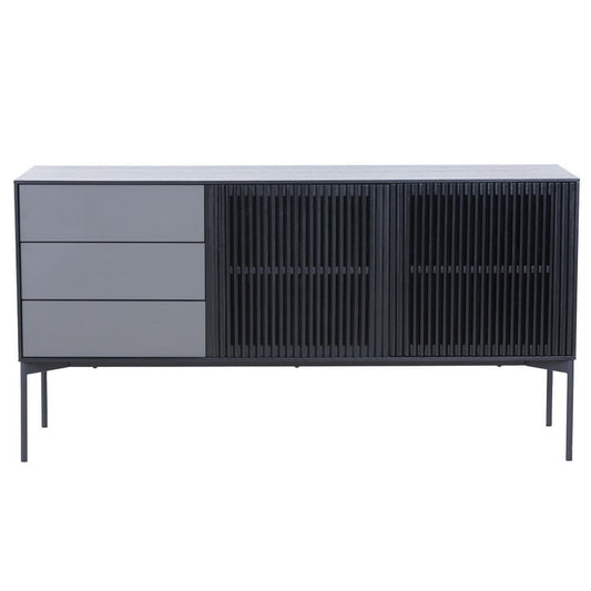 Sideboard Cabinet with 3 Drawers & 2 Doors,Modern Kitchen Buffet Sideboard Storage Console Table with Metal Legs,Buffet Server Cupboard for Living Room Dining Room Entryway,Black