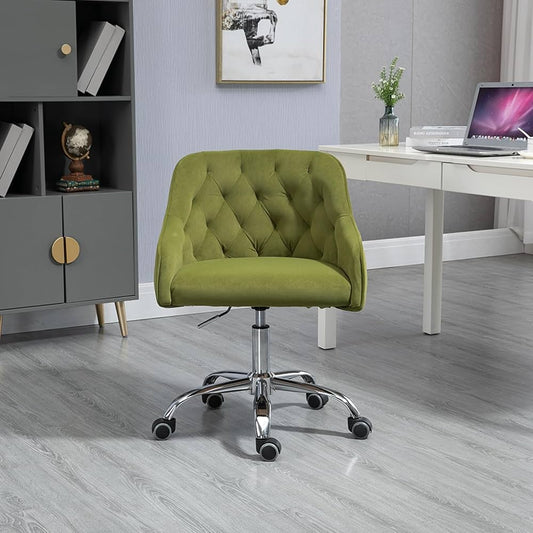 Swivel Shell Accent Chair,Ergonomic Cute Home Office Chair,Modern Leisure Armchair,Feature Curved Backrest,Adjustable Lift Seat and 5-Star Base with Casters, Velvet Fabric, Seat Height 21.65"-25.59"