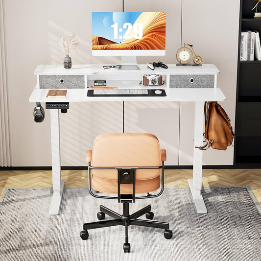 55" X 24" Inch Electric Standing Desk Adjustable Height Stand Up Desk, Sit Stand Desk Adjustable Desk, Home Office Computer Desk With Storage Shelf, Double Drawer,Splice Board,2 Hook