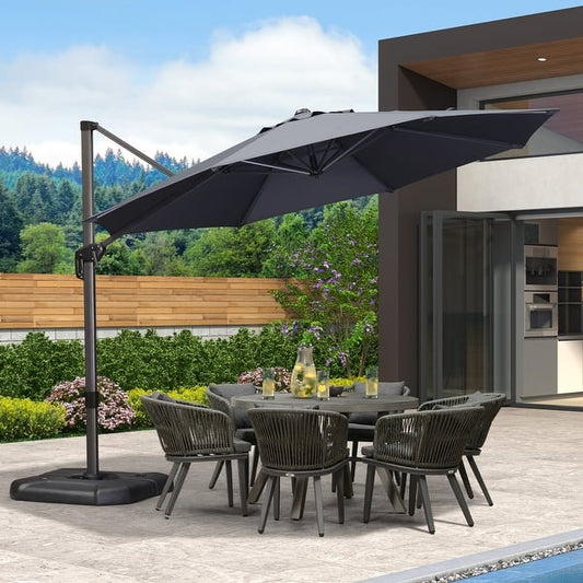 PURPLE LEAF 11 Feet Patio Umbrella Outdoor Cantilever Round Umbrella Aluminum Offset Umbrella with 360-degree Rotation for Garden Deck Pool Patio, Grey