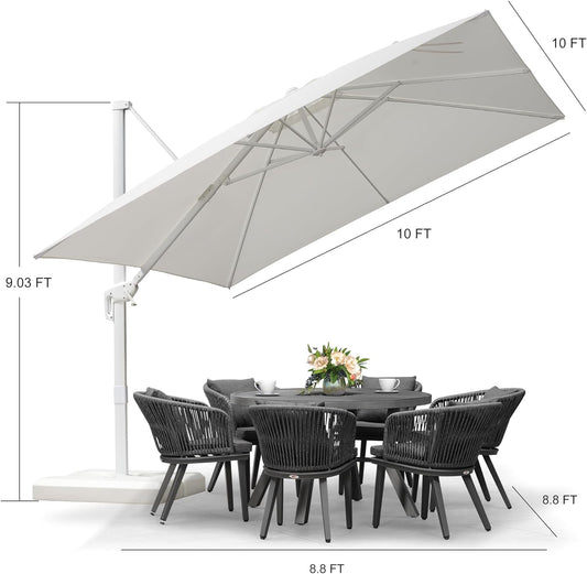 PURPLE LEAF 10 FT Patio Umbrella White Cantilever Umbrella Aluminum Square Outdoor Offset Umbrella Hanging Windproof with 360° Rotation for Garden Deck Pool, White