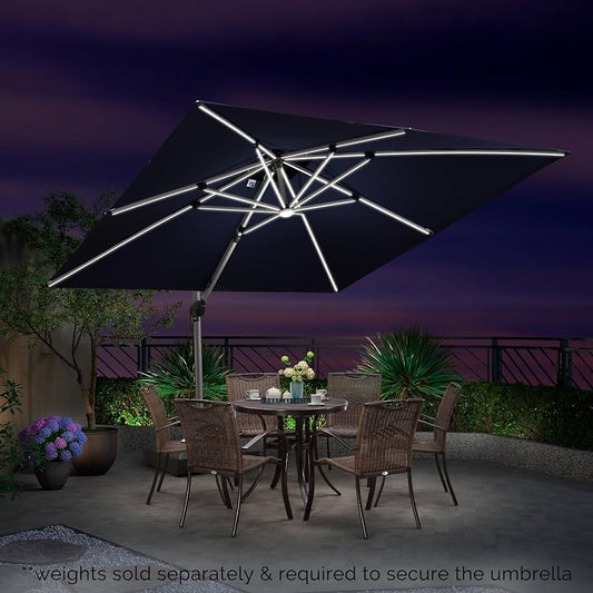 PURPLE LEAF 10 Feet Double Top Deluxe Solar Powered LED Square Patio Umbrella Offset Hanging Umbrella Outdoor Market Garden Umbrella, Including Base. Navy Blue