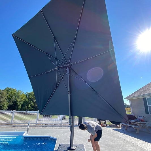 PURPLE LEAF 10x10 Ft Patio Umbrella Outdoor Cantilever Square Umbrella Aluminum Offset Umbrella with 360-degree Rotation for Garden Deck Pool Patio, Grey