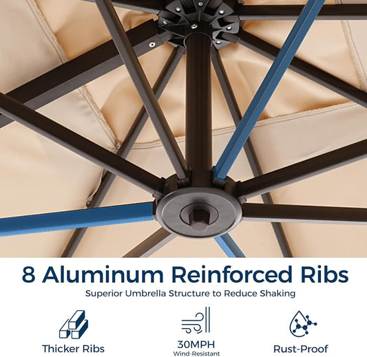 10x10FT Aluminum Cantilever Patio Umbrella - Large Offset Heavy-Duty Umbrella with 360° Rotation, Infinite Tilt,10-Year Rustproof, 5 Year Fade-Resistant for Outdoor, Pool, Beige