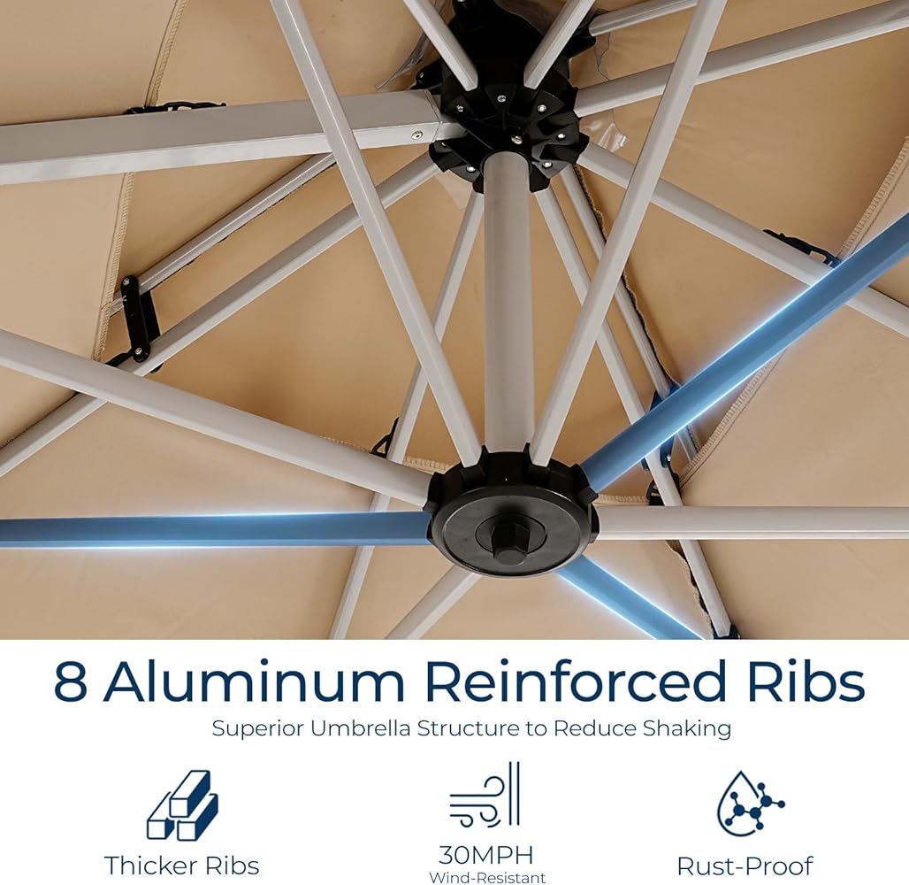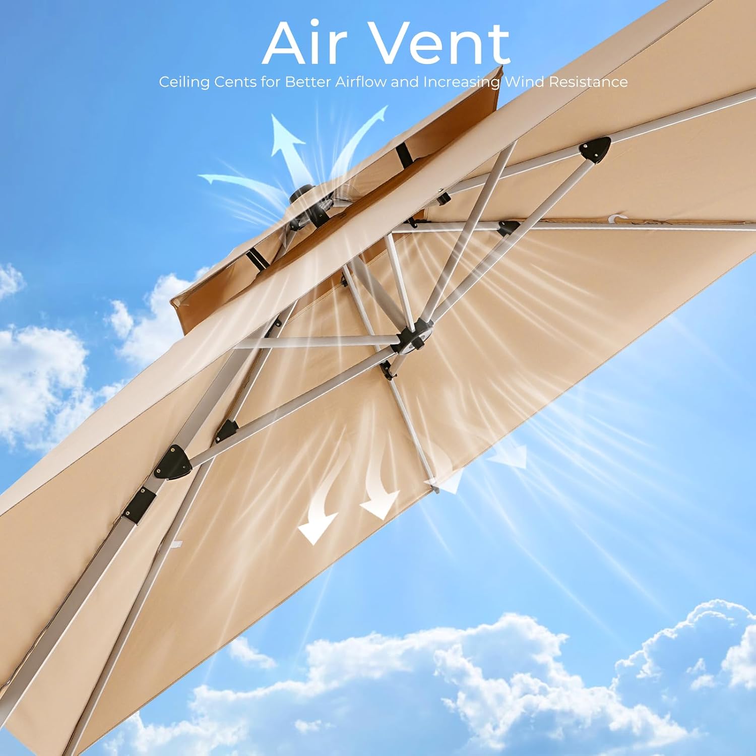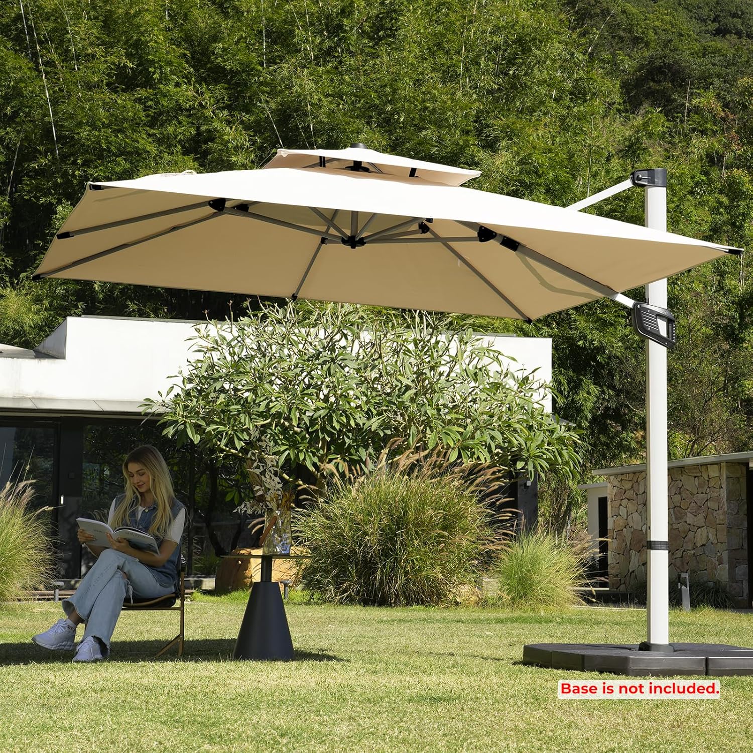 10x10FT Aluminum Cantilever Patio Umbrella - Large Offset Heavy-Duty Umbrella with 360° Rotation, Infinite Tilt, Double Top, 10-Year Rustproof, 5 Year Fade-Resistant for Outdoor, Pool, Beige