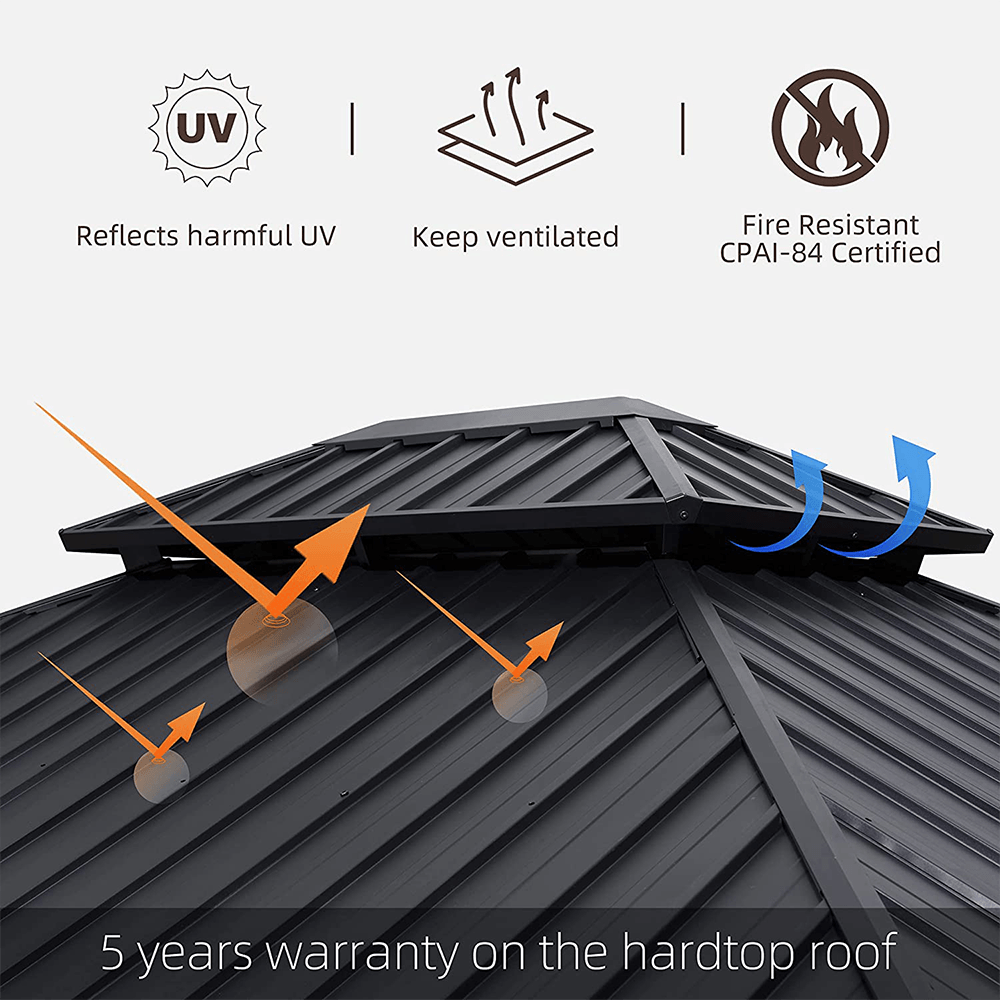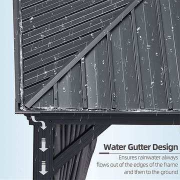- 【Drainage System Design】Reasonably sloped roof designed to allow water to drain quickly,and the water gutter design ensures rainwater flows out of the edges of the frame and poles.