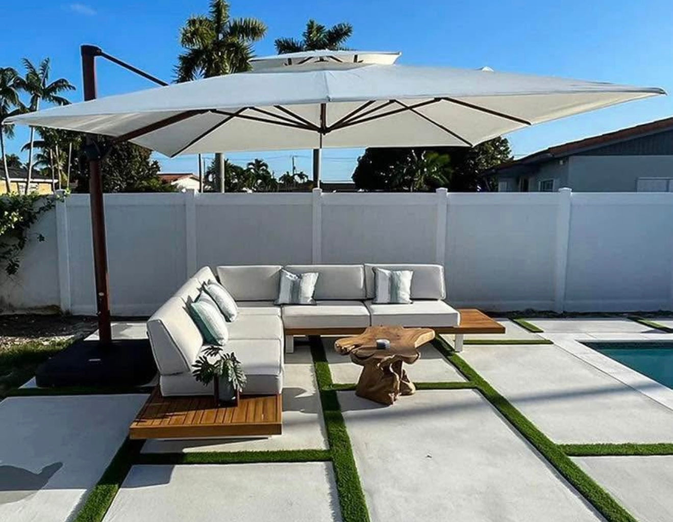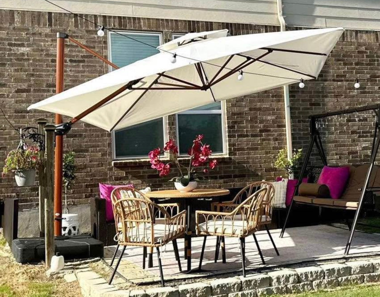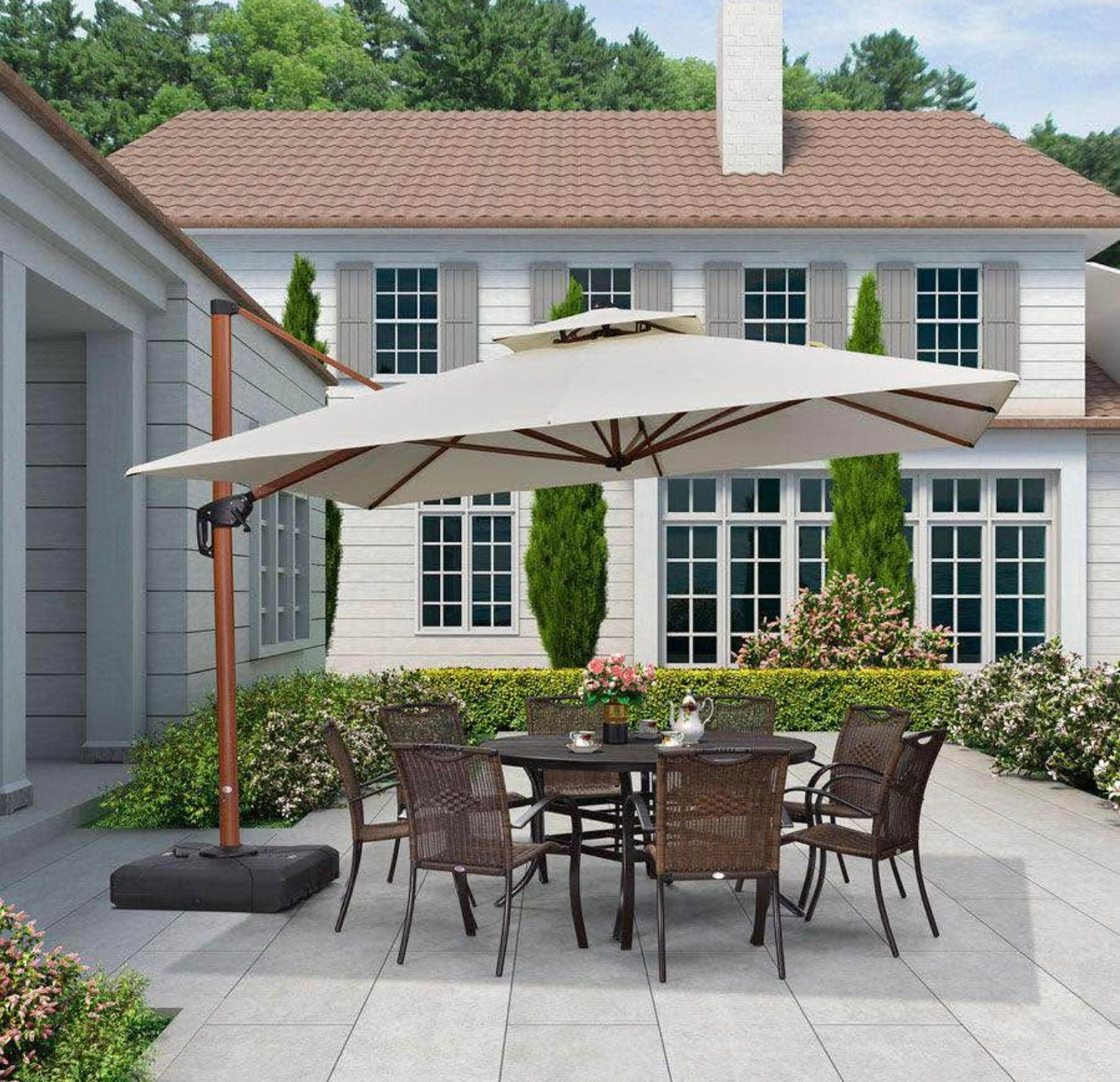 Built with long-lasting materials and a sturdy, well-balanced base, it’s designed to deliver both shade and elegance season after season. Whether you’re gathering for brunch, enjoying a quiet moment with a book, or savoring wine at sunset, this umbrella transforms your patio into a refined retreat.