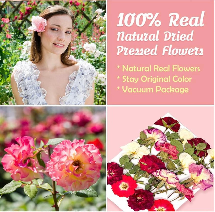 - Real Dried Rose: 16 Pcs high quality dried pressed rose with unique fragrance. The rose set contains different colors and shapes of roses to meet your various crafting needs.