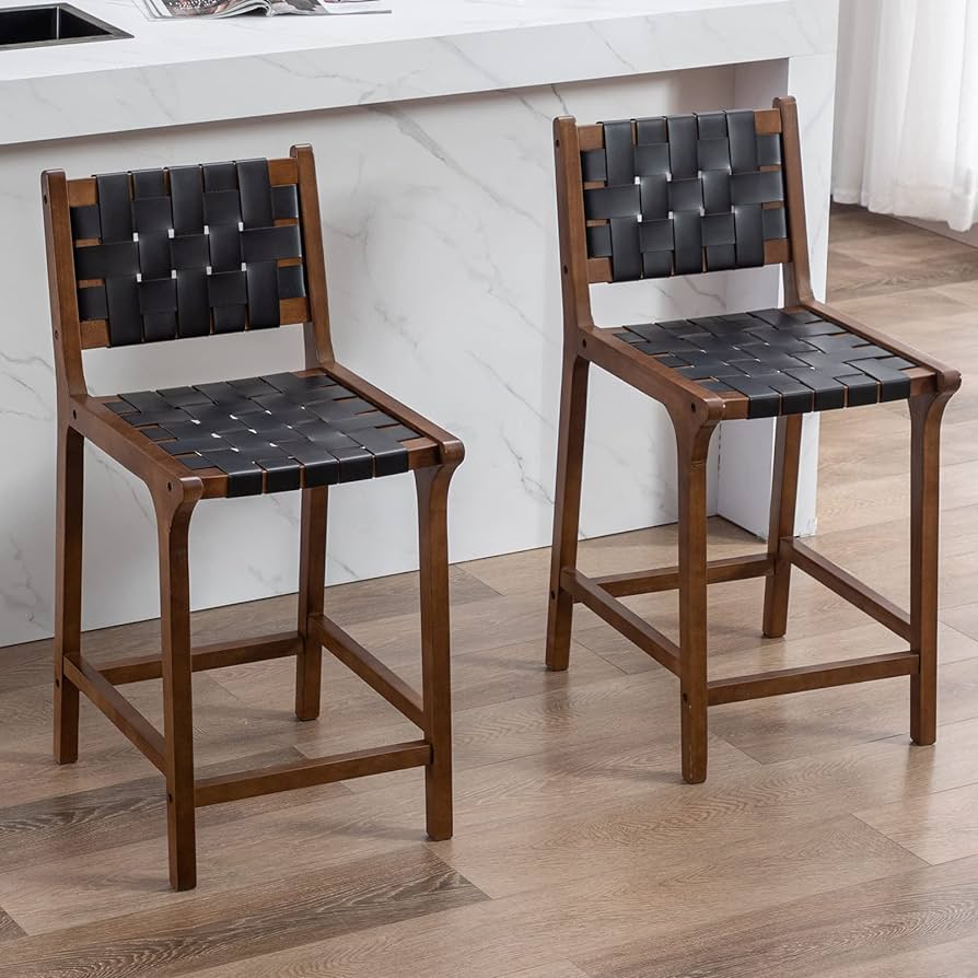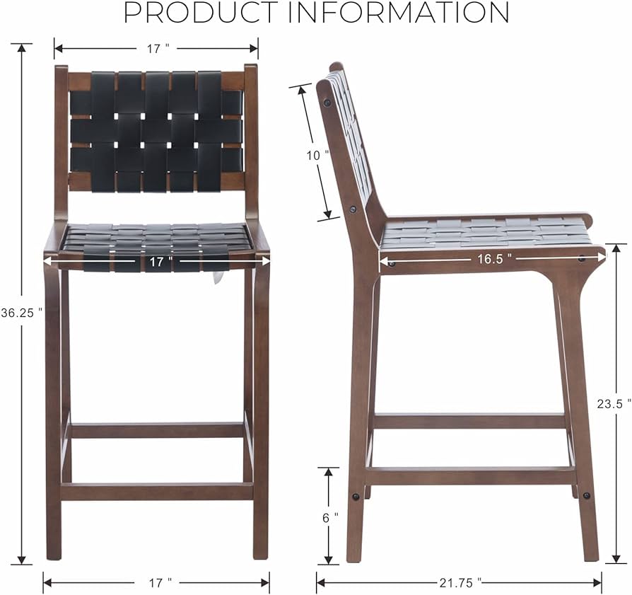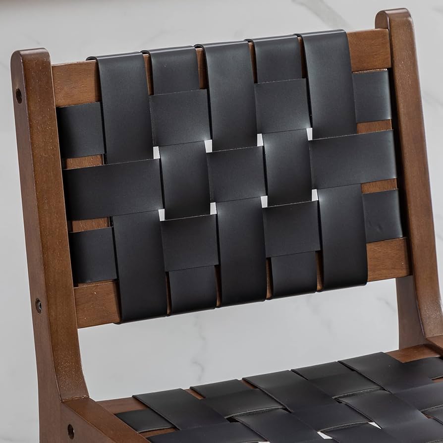 29'' Woven Bar Stools Midcentury Modern Kitchen Barstool with Faux Leather Straps, Stool Chair for Dining Room Kitchen Island High Table, Black