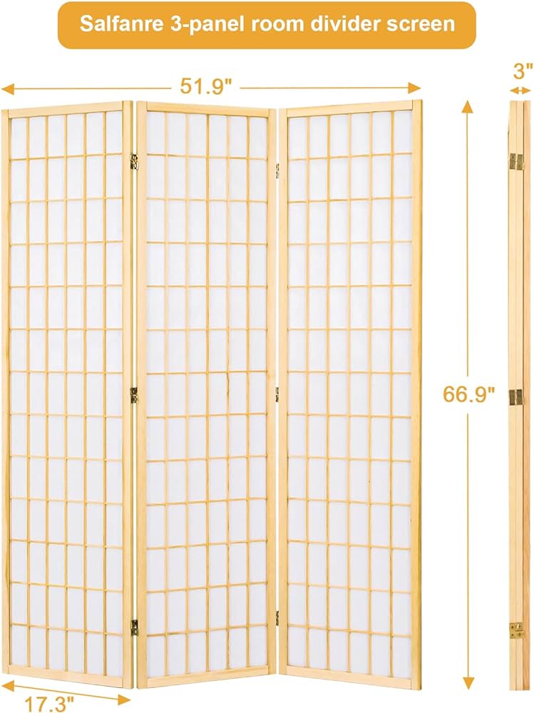 3 Panel Room Divider, Japanese Room Dividers, Shoji Screen, Folding Screen, 5.6 Ft, Natural