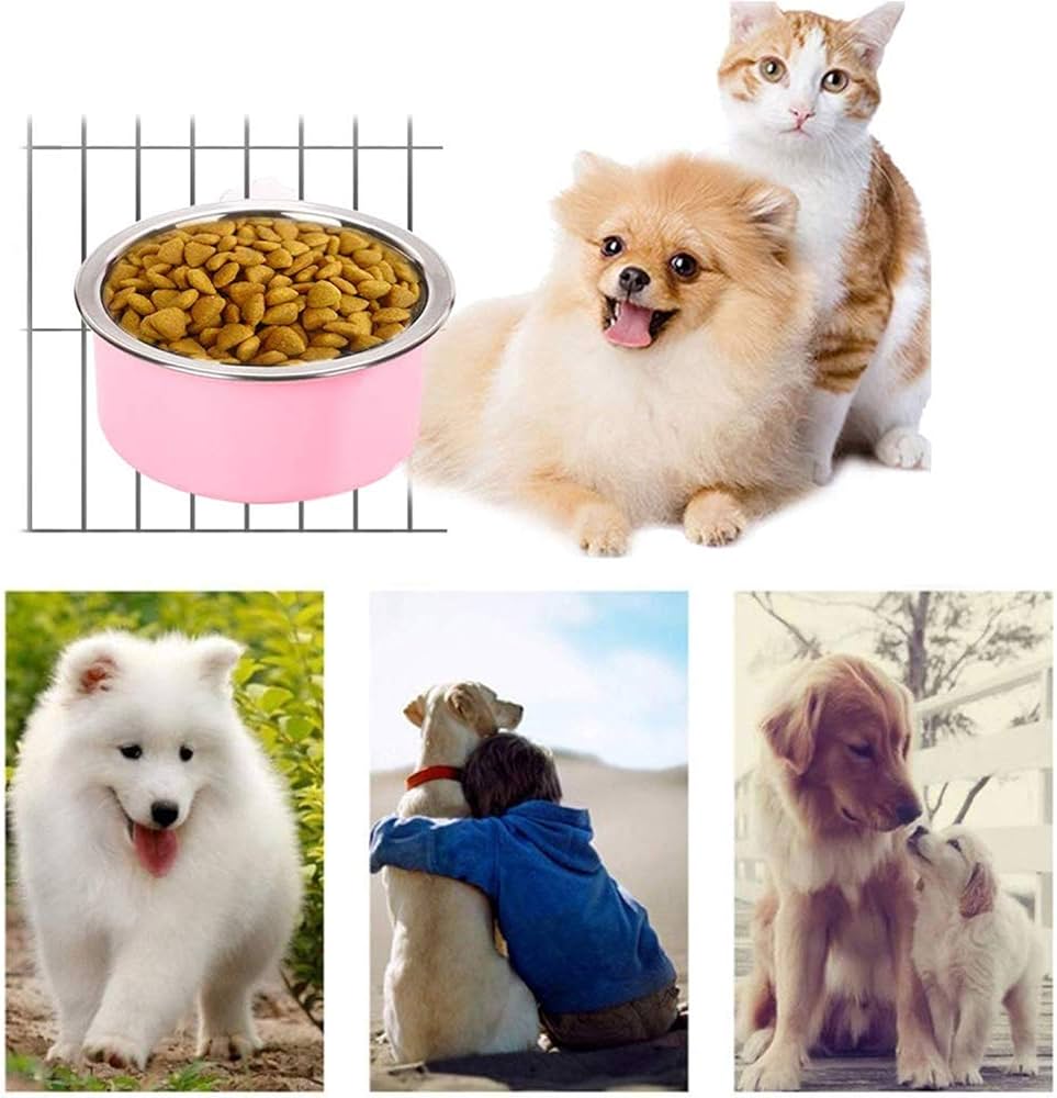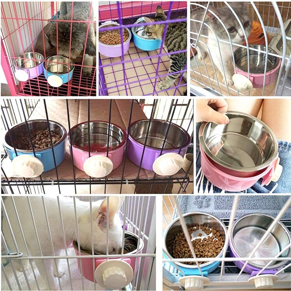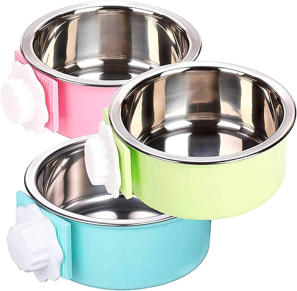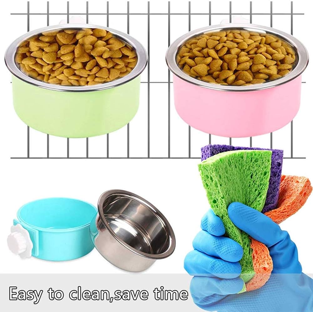 3 PCS Set Crate Dog Food Water Bowls, 2-in-1 Plastic Kennel Bowl & Stainless Steel Pet Bowl, Removable Hanging Cat Food Bowls, Feeder Coop Cup Perfect for Cat, Puppy, Birds, Rats, Ferret, Guinea Pigs.