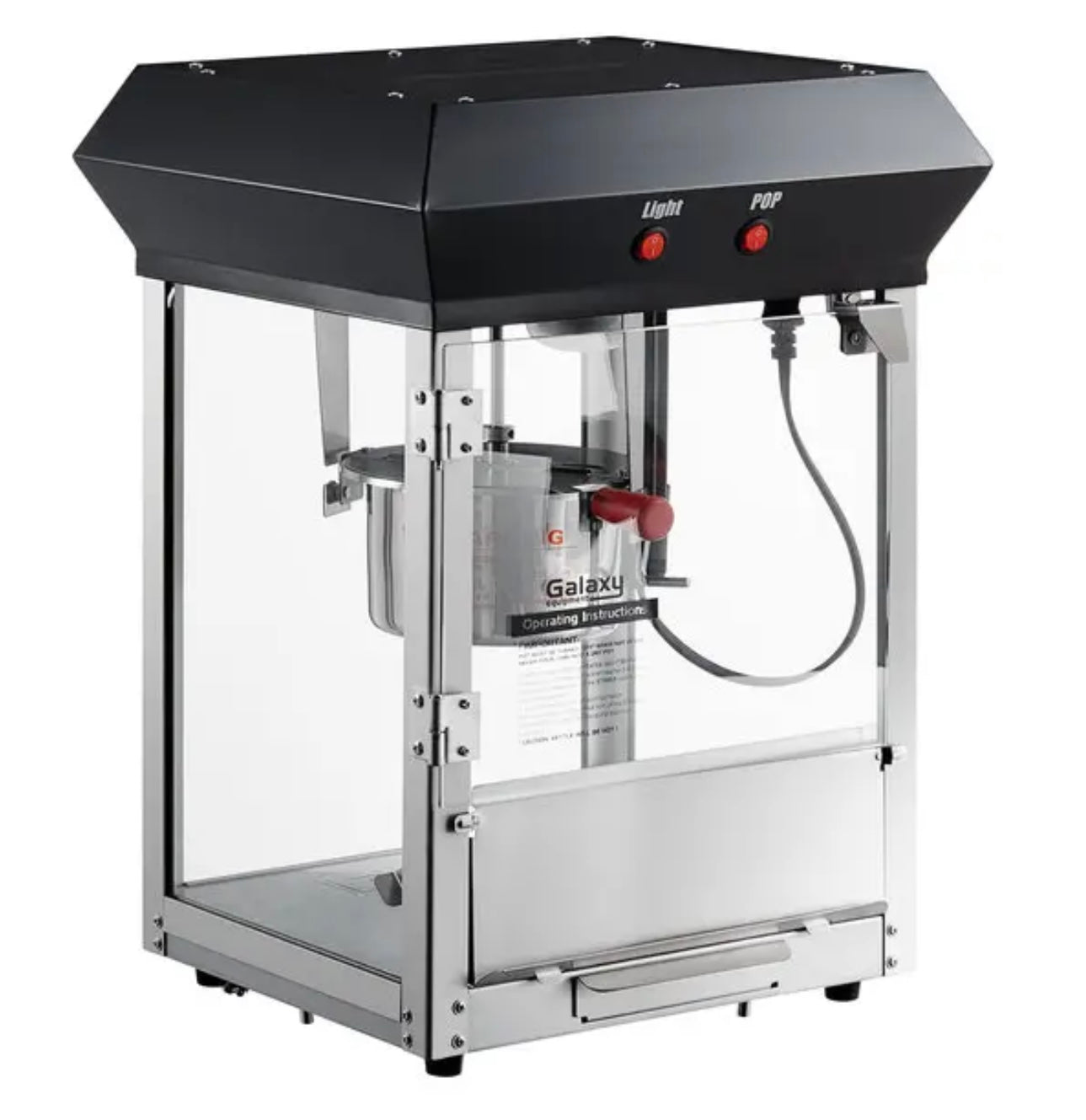 To keep the area clean and free from stray kernels, the unit features a built-in crumb tray. This stainless steel tray catches fallen kernels and is easy to remove to expedite cleaning after use. Collecting and disposing of kernels has never been easier!