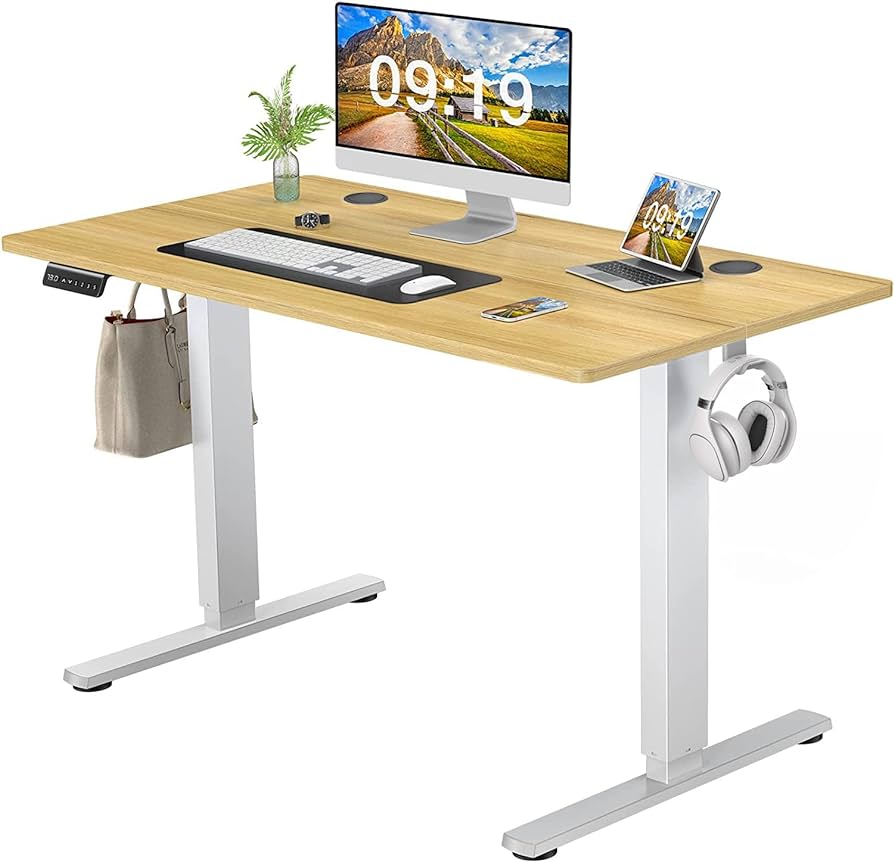 The ergonomic standing desk offers you an elegant workspace, release your hands and effortlessly customize the desired height between 28.7''- 48''. Precise and stable adjustment making your life and work healthier, more comfortable, and more efficient. 【Memory presets】Our stand up desk has 3 memory buttons to store commonly used heights. Simply press ''S'' to save your preferred height. The functional LED display panel allows for precise control and height checking. 【Sturdy desktop】The spacious wooden desktop can accommodate two computers, so there's no crowding. The electric standing desk features a sturdy T-shaped structure that won't wobble even at high elevations. Weight capacity: 176 pounds. 【Smooth adjustment】This sit stand desk uses advanced motors for a longer lifespan. With its carefully designed non-interference feature, our height adjustable desk rises or falls smoothly and quietly (less than 50 dB), providing you with a peaceful experience both at home and in the office.