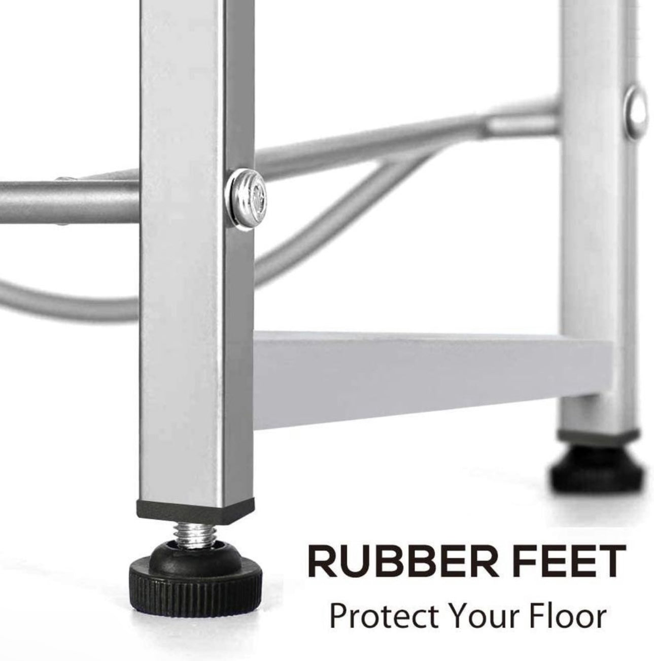 Adjustable Feet: The 4 plastic feet prevent your floors from getting scratched or buffed. The adjustable design makes it leveled even on an uneven floo