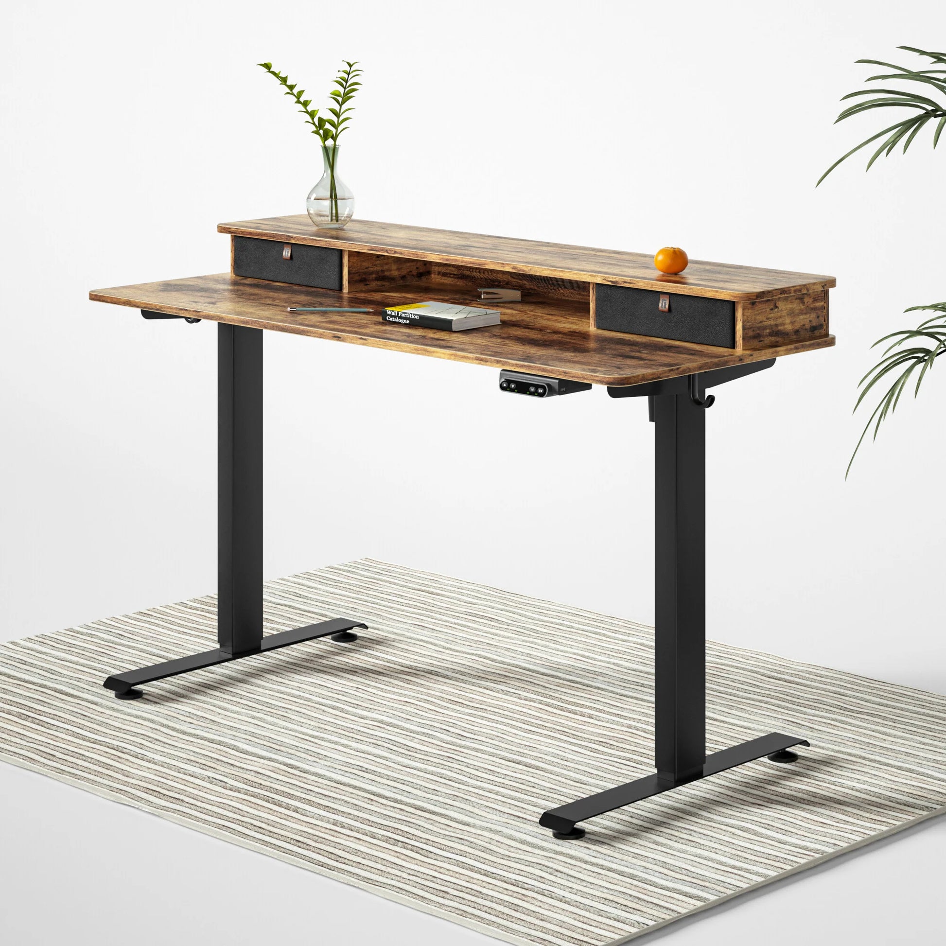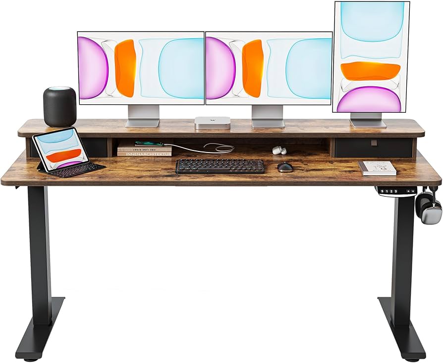 55x24 Inch Electric Standing Desk with Double Drawers, Adjustable Height Stand Up Desk, Sit Stand Home Office Desk with Storage Shelf, Rustic Brown Top