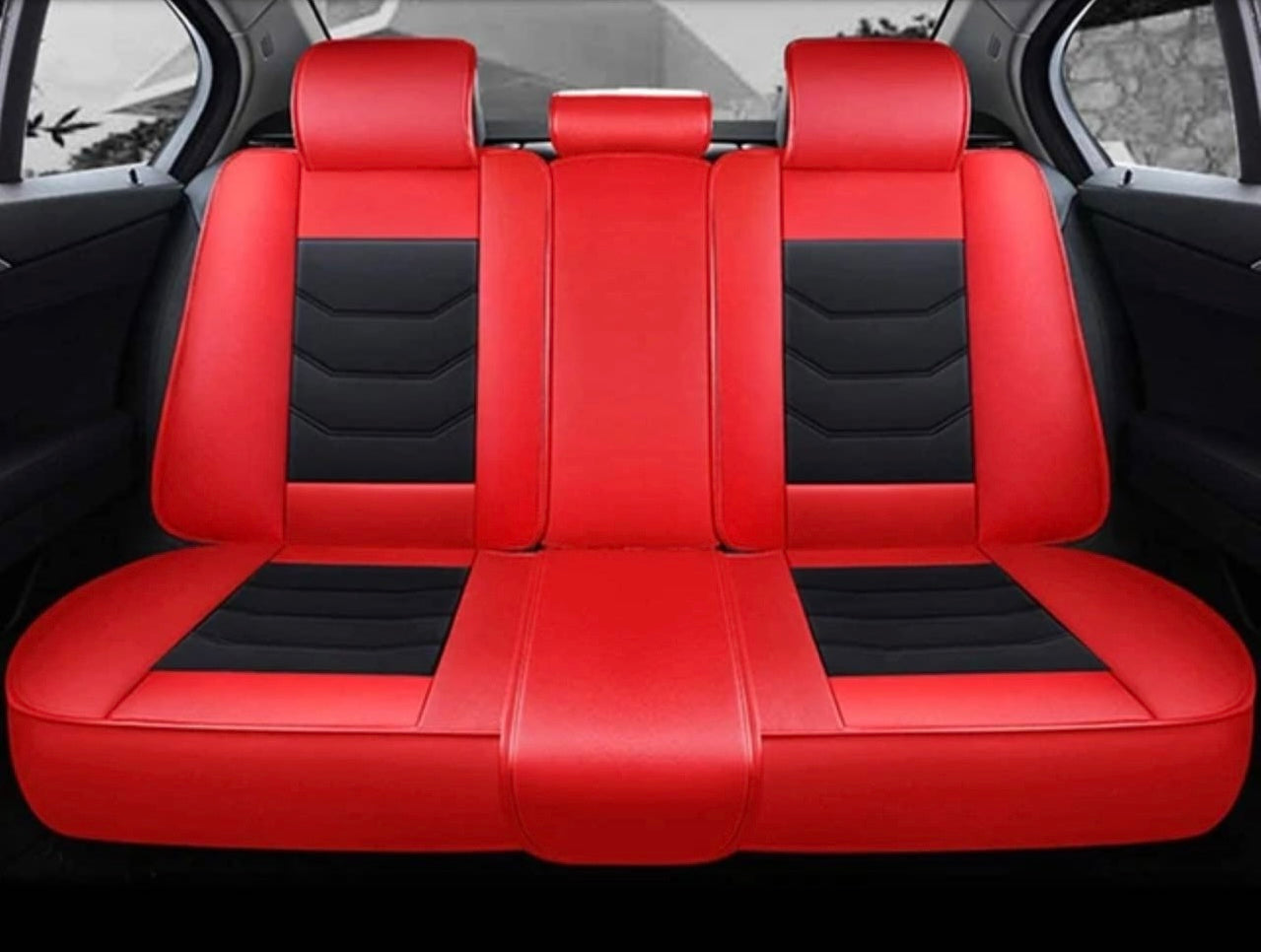 5pcs Universal Car Seat Covers Full Set PU Leather Automotive Vehicle Cushion Cover Full Surround Waterproof Protectors Accessories for Most 5 Seats Cars/SUV/Truck/Vans Red
