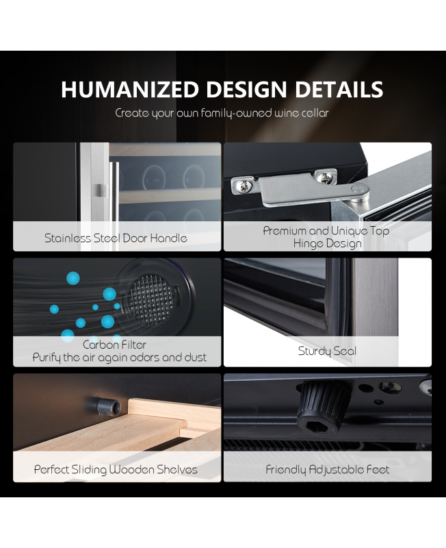 Built from premium black and silver stainless steel with tempered dual pane glass front to highlight your wine collection in any room of your home.