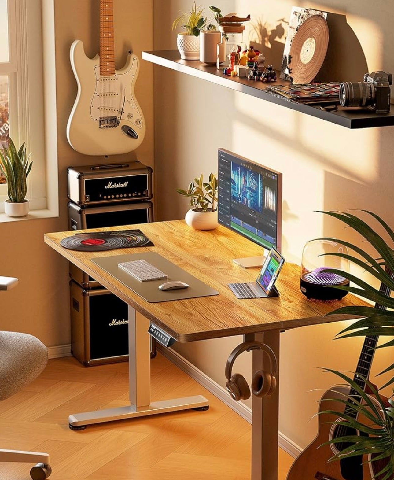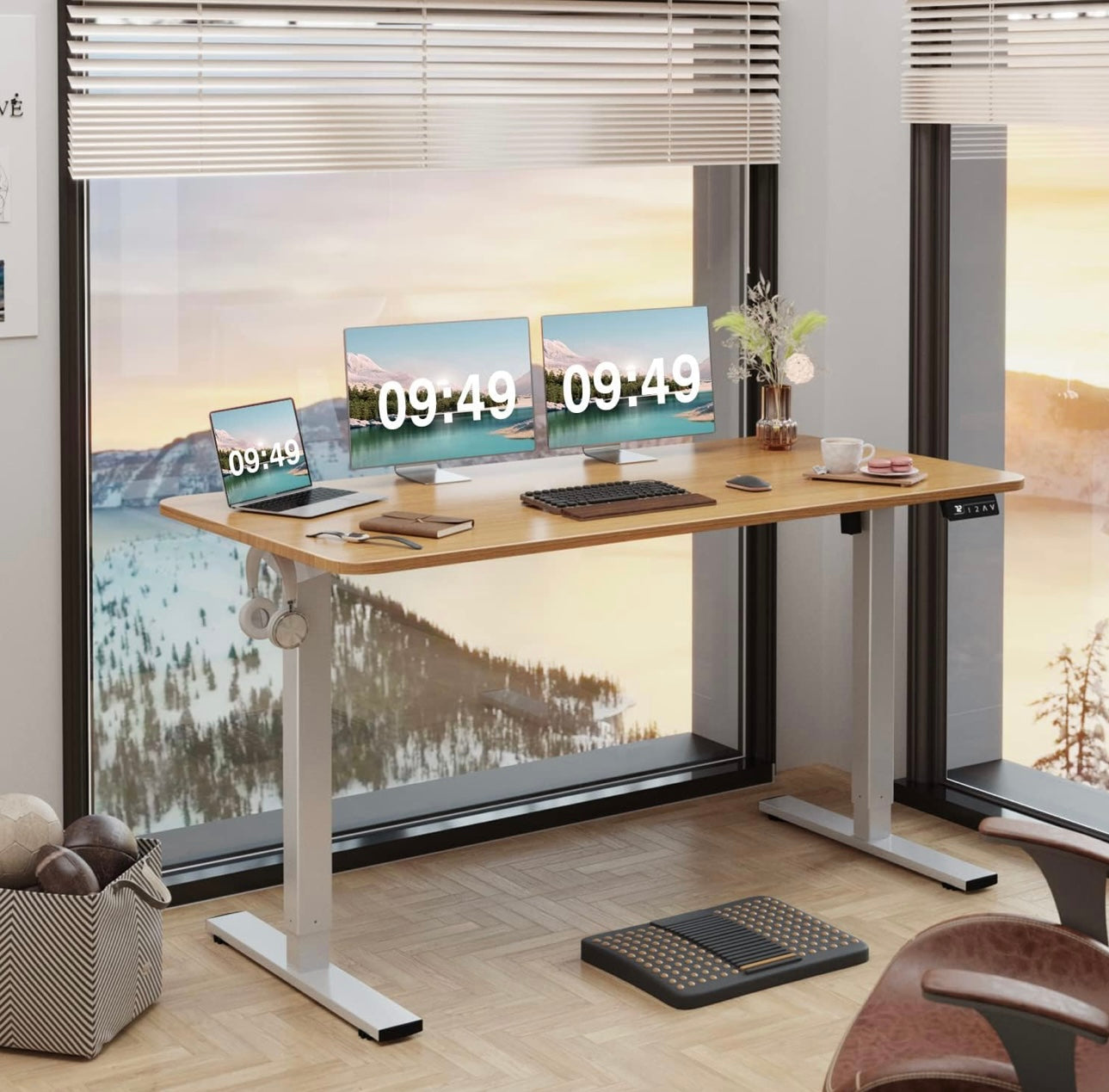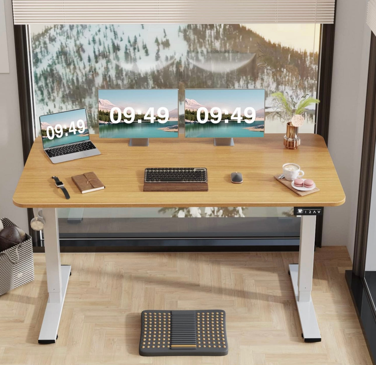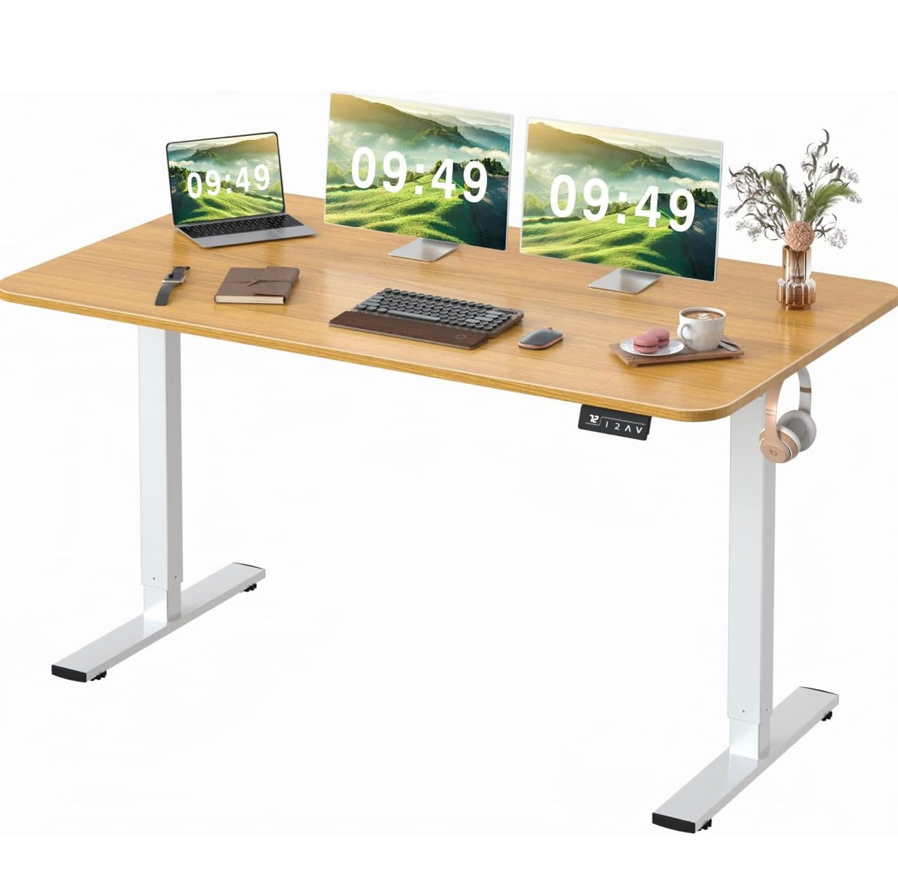 The ergonomic standing desk offers you an elegant workspace, release your hands and effortlessly customize the desired height between 28.7''- 48''. Precise and stable adjustment making your life and work healthier, more comfortable, and more efficient. 【Memory presets】Our stand up desk has 3 memory buttons to store commonly used heights. Simply press ''S'' to save your preferred height. The functional LED display panel allows for precise control and height checking. 【Sturdy desktop】The spacious wooden desktop can accommodate two computers, so there's no crowding. The electric standing desk features a sturdy T-shaped structure that won't wobble even at high elevations. Weight capacity: 176 pounds. 【Smooth adjustment】This sit stand desk uses advanced motors for a longer lifespan. With its carefully designed non-interference feature, our height adjustable desk rises or falls smoothly and quietly (less than 50 dB), providing you with a peaceful experience both at home and in the office.