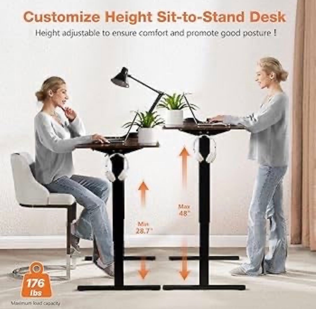 The ergonomic standing desk offers you an elegant workspace, release your hands and effortlessly customize the desired height between 28.7''- 48''. Precise and stable adjustment making your life and work healthier, more comfortable, and more efficient. 【Memory presets】Our stand up desk has 3 memory buttons to store commonly used heights. Simply press ''S'' to save your preferred height. The functional LED display panel allows for precise control and height checking. 【Sturdy desktop】The spacious wooden desktop can accommodate two computers, so there's no crowding. The electric standing desk features a sturdy T-shaped structure that won't wobble even at high elevations. Weight capacity: 176 pounds. 【Smooth adjustment】This sit stand desk uses advanced motors for a longer lifespan. With its carefully designed non-interference feature, our height adjustable desk rises or falls smoothly and quietly (less than 50 dB), providing you with a peaceful experience both at home and in the office.